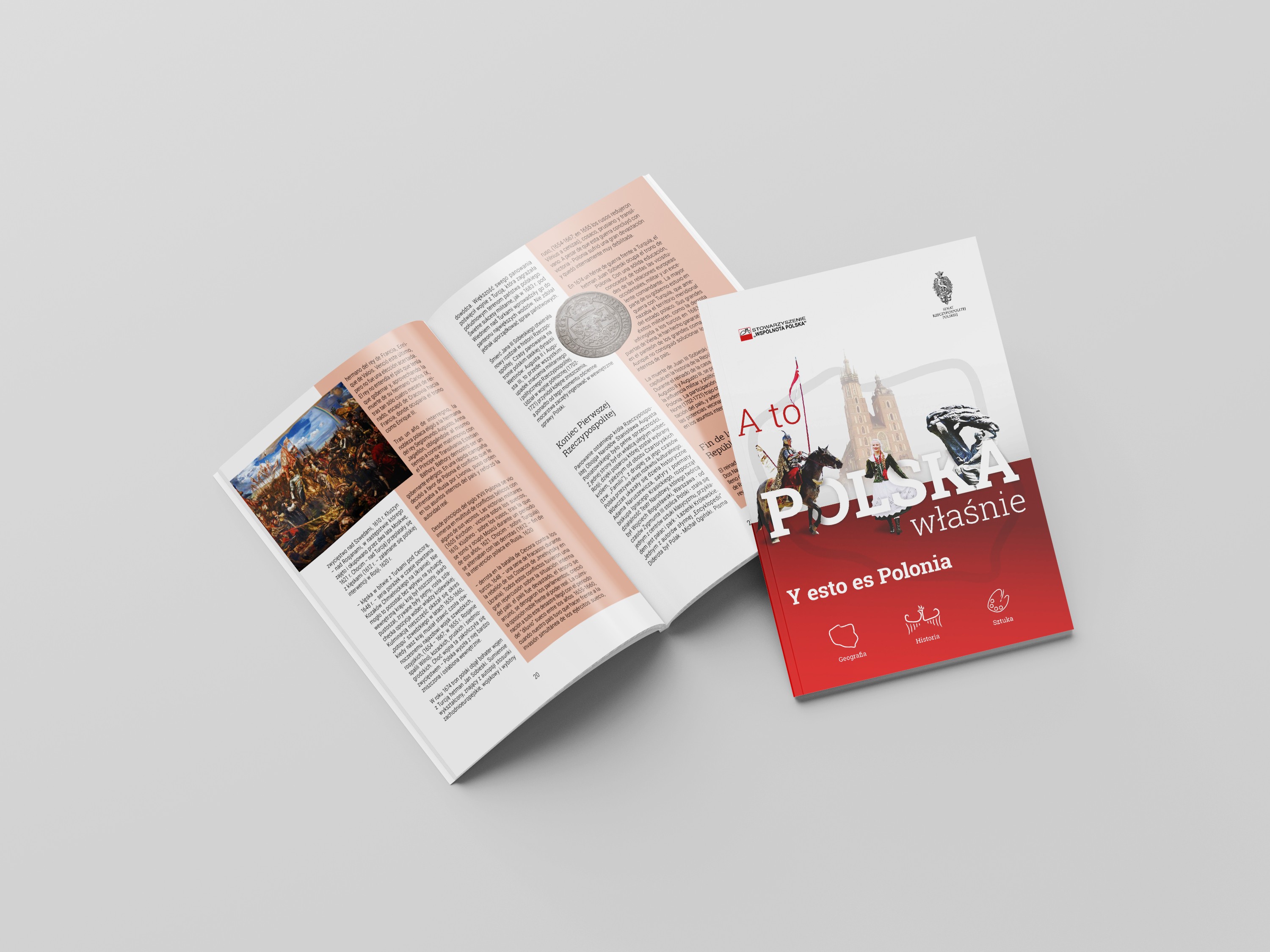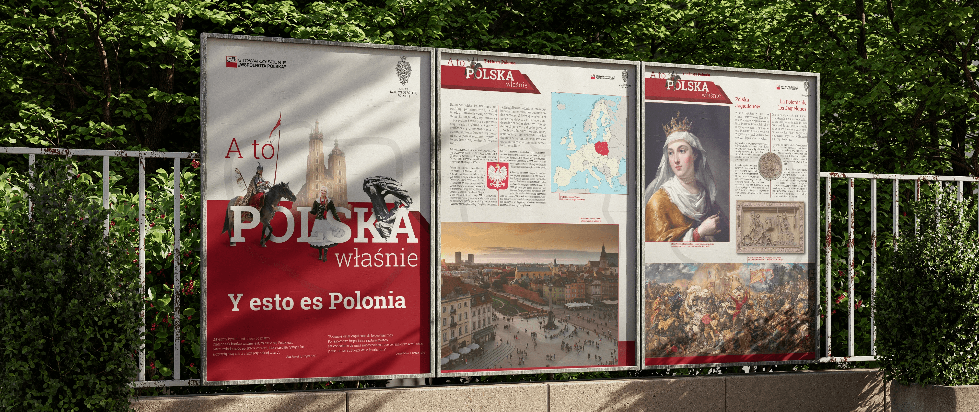To wielojęzyczny projekt skierowany do Polaków za granicą. Chcieliśmy w tym wypadku w atrakcyjny sposób ukazać wiele aspektów naszej ojczyzny, jej geografię, historię i sztukę. Przygotowana została wystawa plenerowa oraz towarzysząca jej broszura w trzech wersjach językowych. Na pierwszy plan wyłaniają się barwy narodowe i elementy graficzne jednoznacznie kojarzące się z Polską.