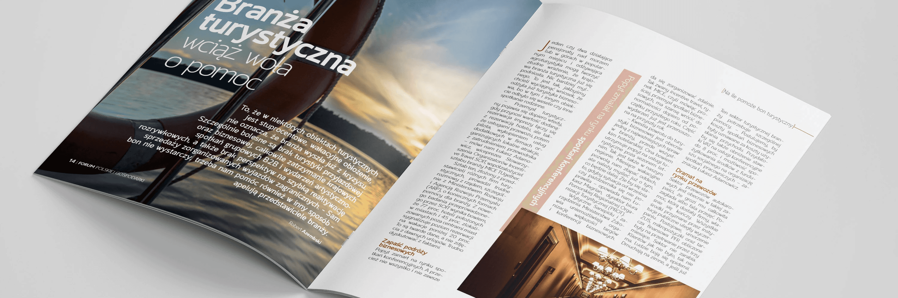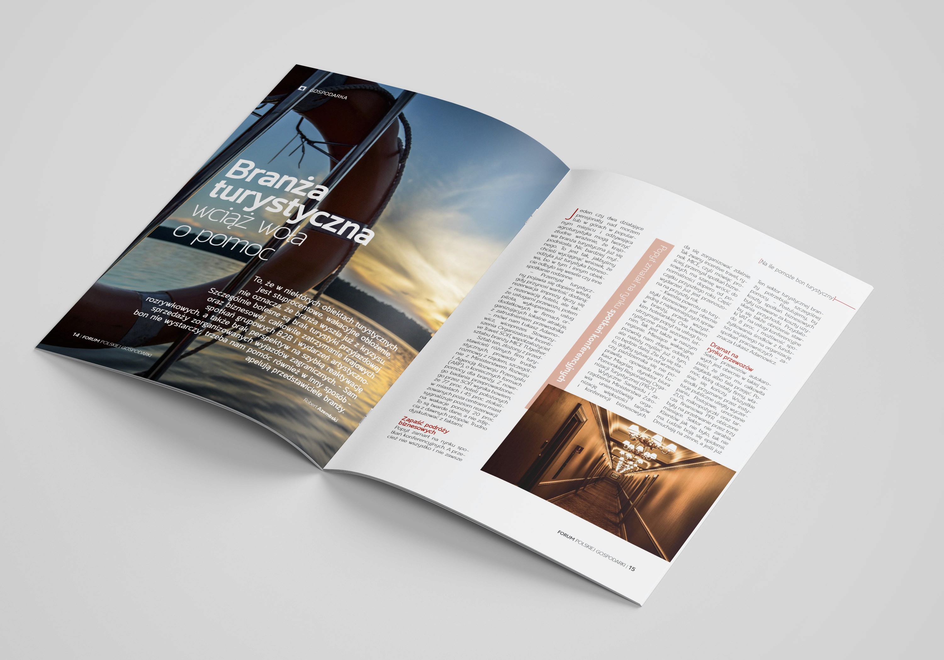 Forum Polskiej Gospodarki to magazyn społeczno-ekonomiczny. Zaprojektowaliśmy layout magazynu, obwoluty oraz złożyliśmy i przygotowaliśmy do druku szereg numerów miesięcznika. Założeniem było stworzenie pisma wyróżniającego się ciekawymi okładkami i nowoczesnym, dynamicznym wyglądem wnętrza. Dodatkowo wzbogaciliśmy artykuły o liczne zdjęcia i elementy urozmaicające, jak wyróżnione cytaty czy infografiki.