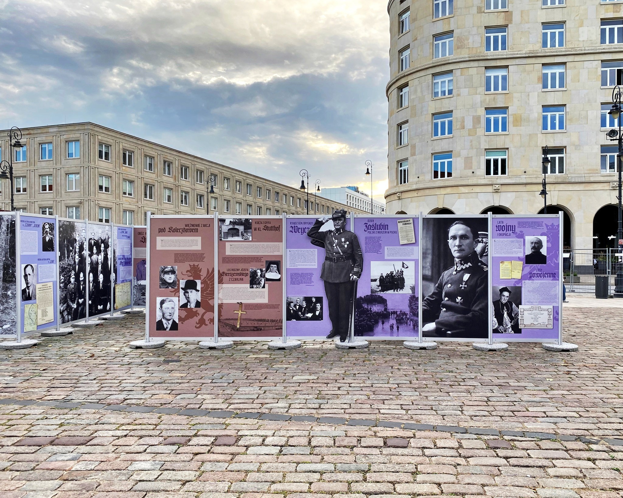 Na projekt składa się 37 dwustronnych plansz o wymiarach 100x185 cm wykonanych z pyty dibond. Eksponowane w aluminiowych stojakach stworzyły ciągłą ekspozycję, wzbogaconą o wycięte sylwetki wybranych postaci.