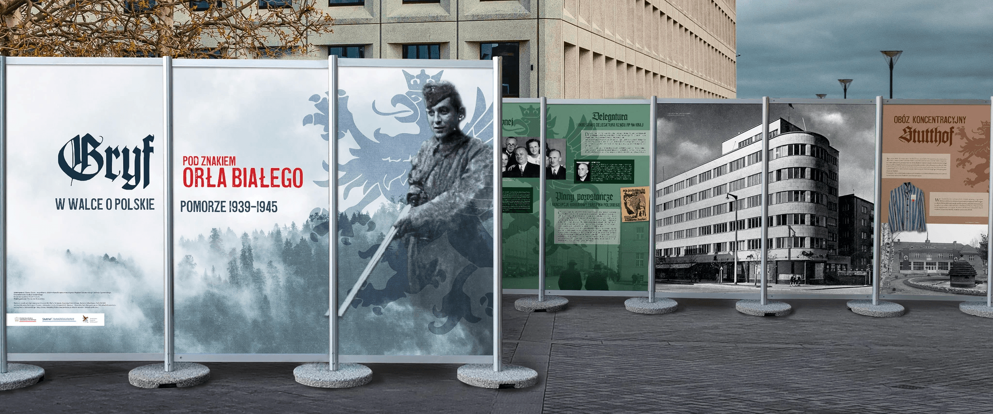 W tym projekcie, tworzonym razem z Muzeum Stutthof, poświęconym organizacji podziemnej Gryf Pomorski, chcieliśmy ukazać ogromną rolę jaką spełniała podczas II wojny światowej na Pomorzu. Głównym motywem jest wizerunek Gryfa – symbolu Pomorza. Chcieliśmy oprzeć się na dużych, dobrej jakości zdjęciach dokumentujących podziemną walkę i okupacyjną rzeczywistość mieszkańców Pomorza, a także niemiecki terror w nich wymierzony. Kluczowe postaci w przypadku wystawy zostały wykonane na dodatkowych elementach, tak aby ich obrys wystawał poza plansze, dzięki czemu osiągnęliśmy efekt trójwymiarowości.