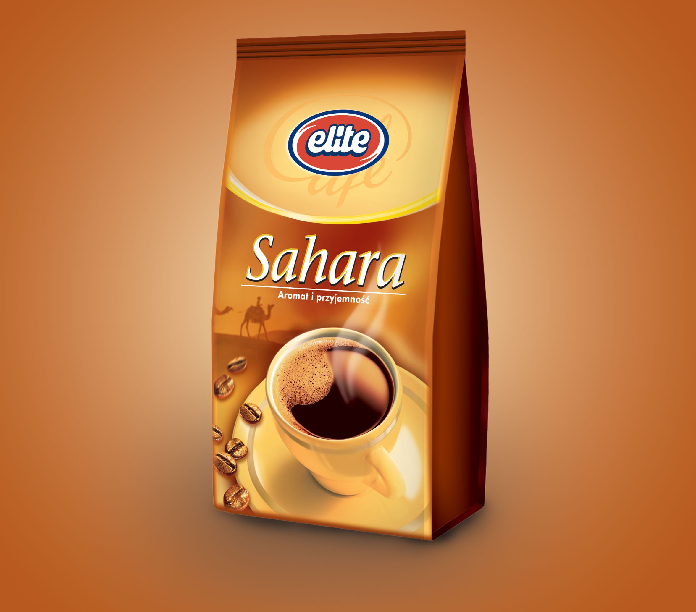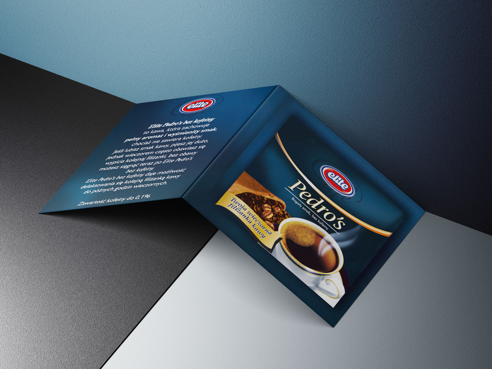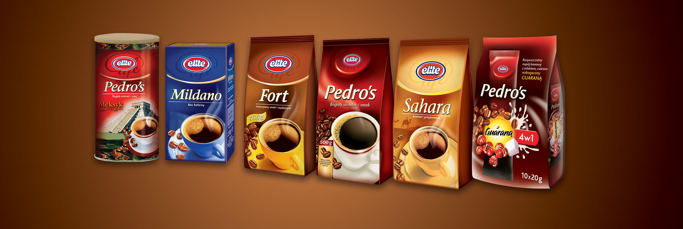 Współpraca z firmą Elite zakładała projekty serii opakowań kawy oraz materiały promocyjne.