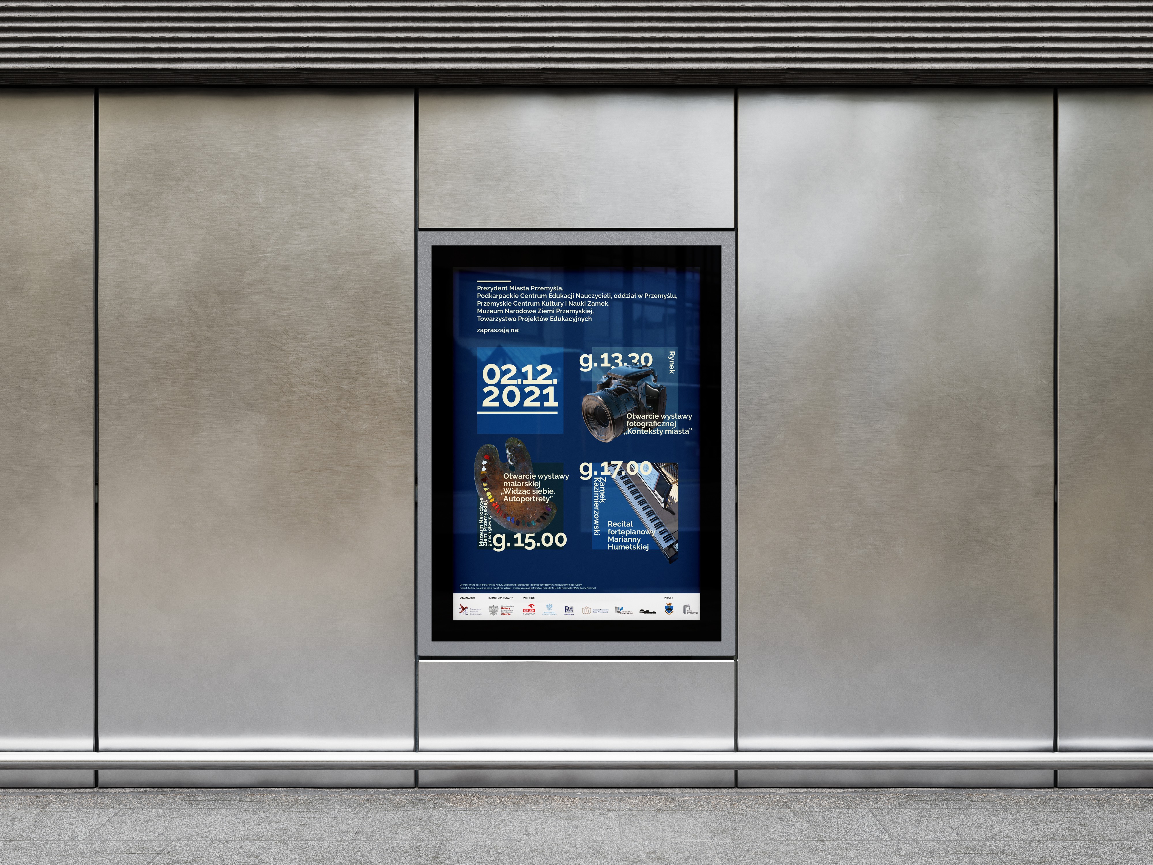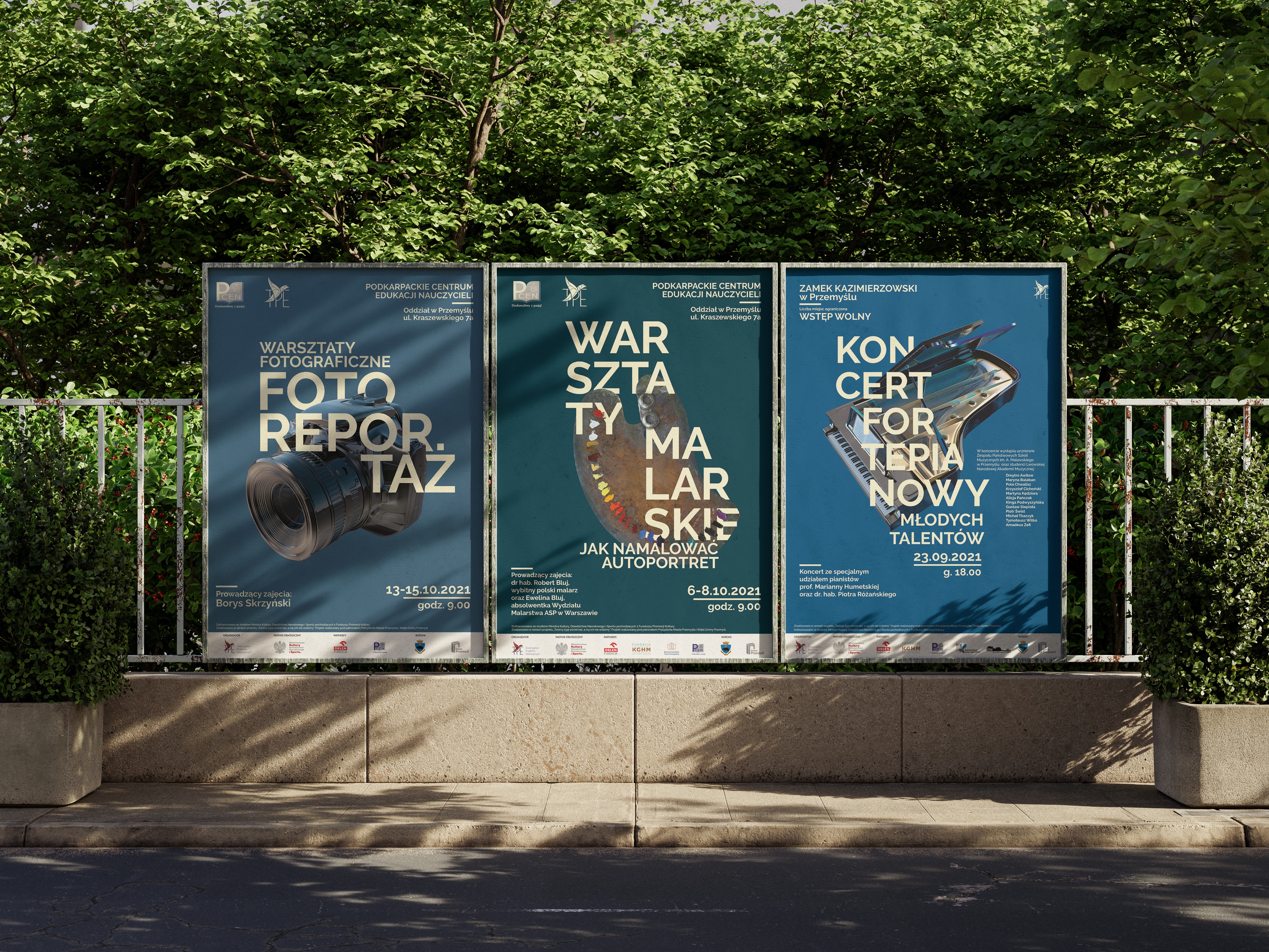 Mieliśmy przyjemność stworzyć oprawę graficzną dla cyklu warsztatów dedykowanych młodym talentom: pianistom, fotografom i malarzom. Opracowaliśmy spójną szatę graficzną dla wydarzenia poświęconego trzem dziedzinom sztuki – wystawom malarstwa „Widząc siebie. Autoportrety” i fotografii reportażowej „Konteksty miasta” oraz recitalowi fortepianowemu Marianny Humetskiej.
